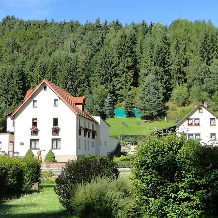 Das Hotel Gästehaus Hofmann - 4 Sterne Ferienwohnung Sommerberg Rohrbach mit Ausblick auf den Garten ist nur 3 km von der Talsperre Leibis-Lichte von Rohrbach entfernt. Die Gäste, die in der der Pension übernachten, können ihr Auto vor Ort parken.